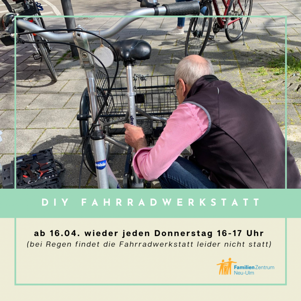 Ab dem 16.04.2026 nimmt die DIY-Fahrradwerkstatt des Familienzentrums wieder ihren Betrieb auf. Das offene Angebot findet künftig jeden Donnerstag von 16 bis 17 Uhr auf dem Platz vor dem Familienzentrum statt.